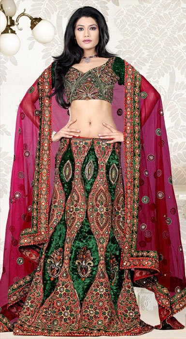 Latest Bridal Lehenga Choli Designs have made their presence felt in a big Indian wedding. The confluence of traditional and modern look makes it a much more desirable to wear indigenous women at weddings. If you decide to go for a designer Lehenga Choli his day "D", then you might even consider limiting their use of makeup to a minimum. The wedding dress is of paramount importance in the bridal ensemble. In these days of fashionable embroidered lehenga cholis are considered best for its elegant design and simple to ornate both are available.